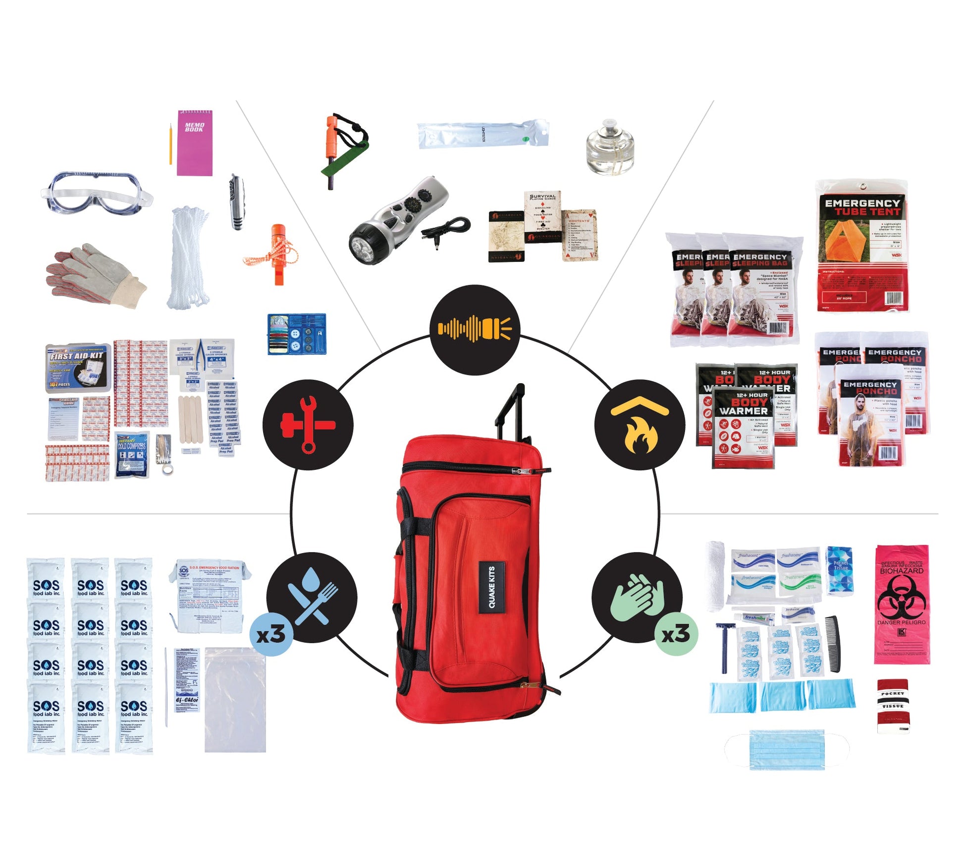 Elevate your readiness with the Quake Kits Completely Prepared Emergency Kits category. Designed for those seeking a truly comprehensive approach to preparedness, these kits bundle an extensive array of survival supplies and tools within durable, multi-compartment Quake Kits backpacks and wheel bags. Ideal for individuals or small groups facing potential evacuations, extended emergencies, or desiring a high degree of self-reliance, these kits cover critical needs across the board.