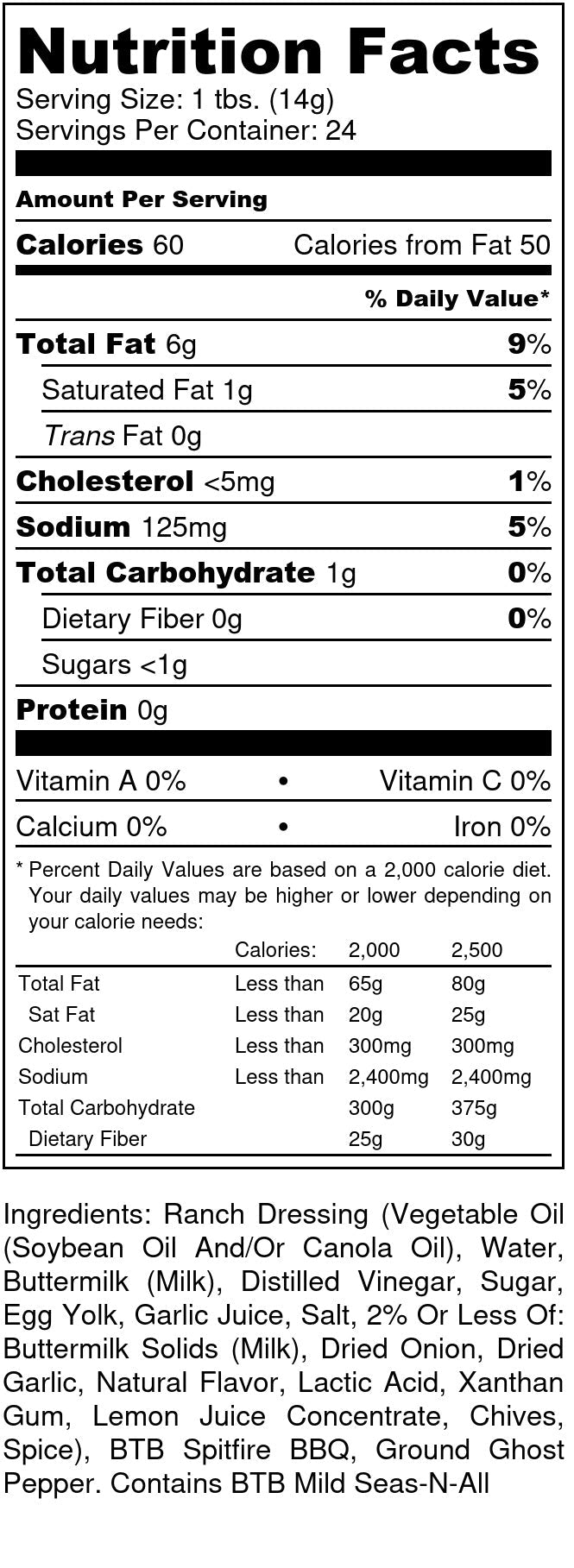 Meet our hottest sensation, Spitfire Ranch—an absolute crowd-pleaser and our most sought-after sauce. So popular that we constantly find it hard to keep in stock, this zesty and creamy delight is a game-changer. Whether enhancing your burgers, giving your fries an exciting kick, or basting your grilled chicken, this spicy ranch adds a bold dimension to every bite. Get ready for a culinary addiction—you'll soon discover it's challenging to live without this irresistibly fiery yet creamy sauce.